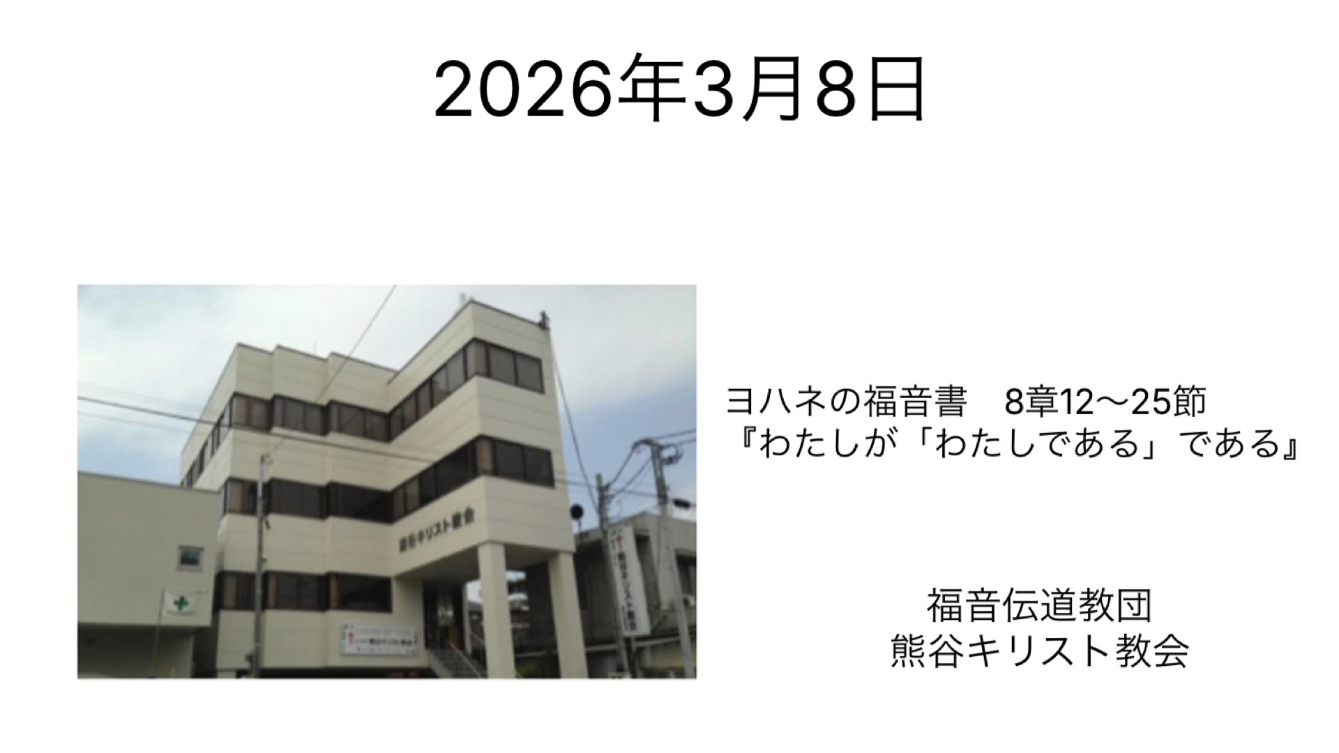 3月1日礼拝 福音伝道教団熊谷キリスト教会