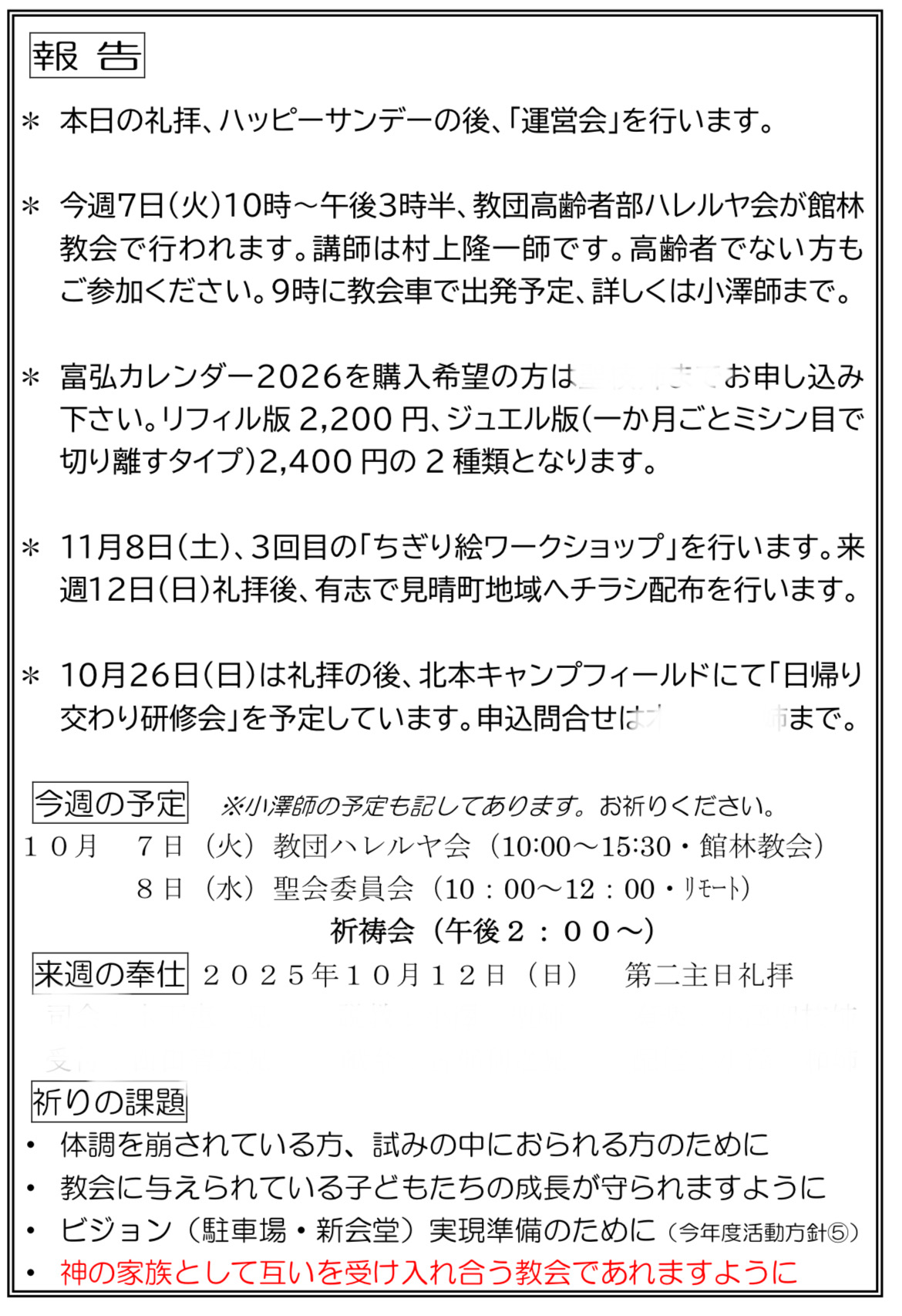 『「強くあれ、雄々しくあれ」聖歌で親しまれ、歌っているだけで力が湧いてきそうですが、何となくその気になることが宿仰なのでしょうか?「強くあれ、雄々しくあれ」が「がんばれ、がんばれ」という風に聞こえて、かえって気落ちしてしまうのが、現代社会の精神的状況のように思います。「強くあれ、雄々しくあれ」の言葉に注目してしまいがちですが、それよりも大切なのは、「神様が共におられる」という事です。』