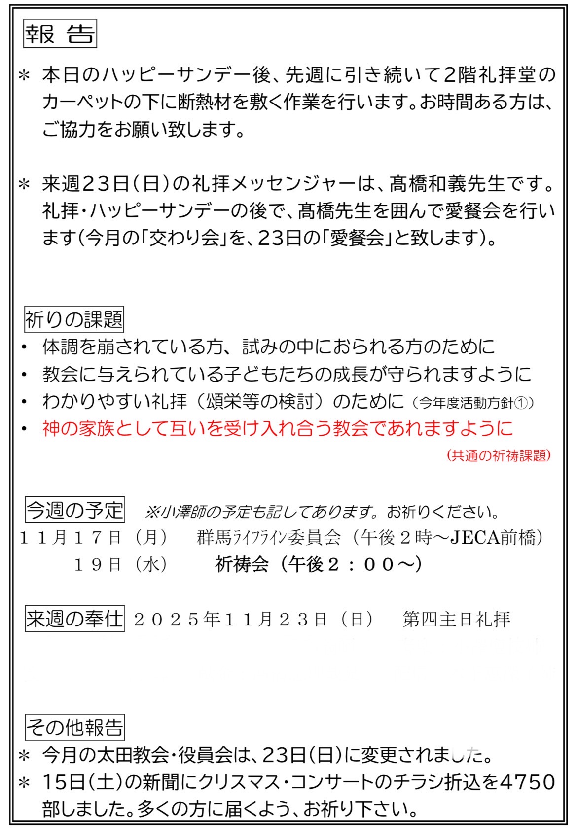 士師記を読むと、ヨシュアが亡くなった後に、とっても暗い時代が続いていた事がわかります。そのような霊的暗黒時代の中でしたが、ベツレヘムの町では、主なる神様をじる人達の、信仰に生きる誠実な姿が描かれていて、その人たちの上に神様の豊かな導きと恵みがあった事が描かれています。そして、ダビデ王につながる系図によって、ベツレヘムを越えて、イスラエル全体に神様の祝福が及ぼうとしている事が、示されているのです。