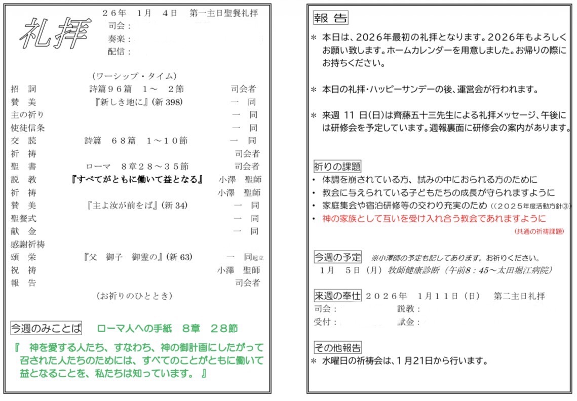 「神様がおられるならどうして…」過ぎた年月の中でそう感じた経験は誰にでもあるでしょう。新しい年を迎えた私たち、今年も色々な事を味わうでしょう。喜びや楽しみばかりではなく、悲しみや苦しみもある事でしょう。