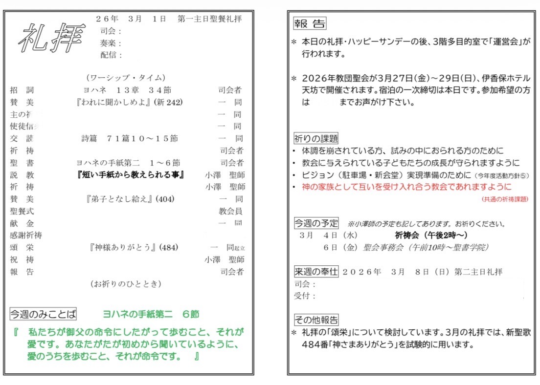「短い手紙から教えられる事」IIヨハネ1〜6節